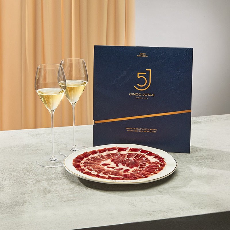 Ideal for celebrations, pairings with fine wines or as an exclusive gourmet gift, 5 Jotas Sliced Ham combines practicality and authenticity. Recognised worldwide as a symbol of Spanish haute cuisine, its quality is guaranteed by the purity of the 100% Ibérico breed, free-range rearing and natural curing of over 36 months in Jabugo’s unique microclimate.