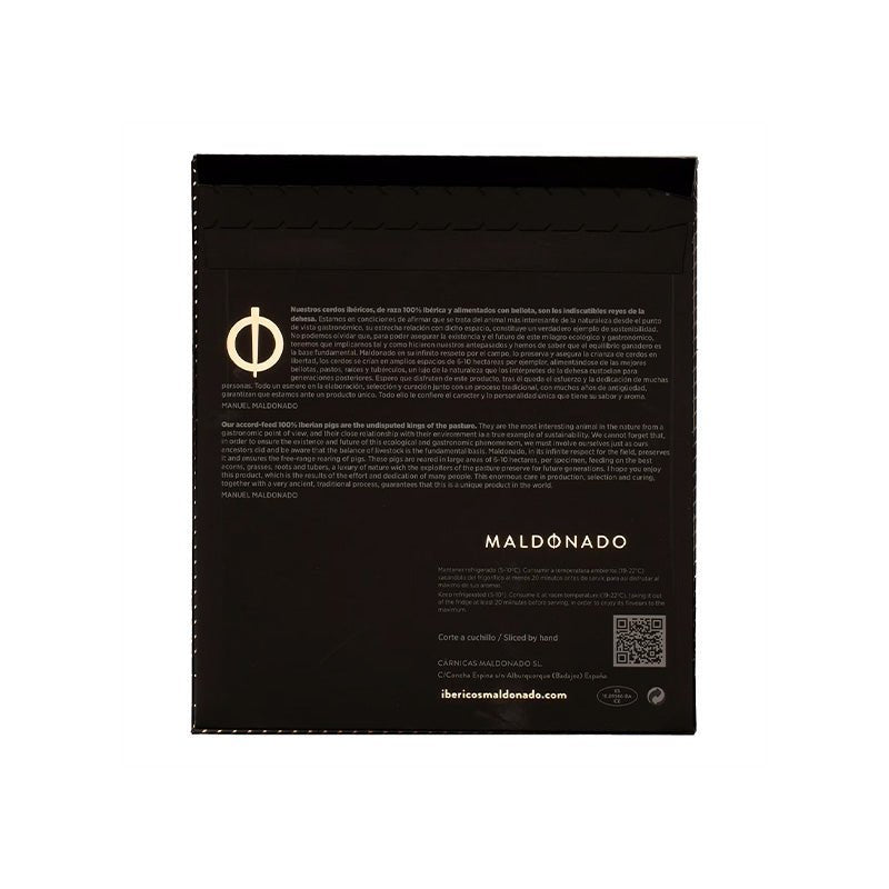 Maldonado é sinónimo de distinção no universo ibérico. O seu presunto de bolota 100% ibérico é considerado um dos mais refinados do mercado, valorizado por chefs, sommeliers e amantes do produto artesanal. O formato fatiado mantém essa excelência, combinando tradição, comodidade e a apresentação impecável da Alba Ibérico.