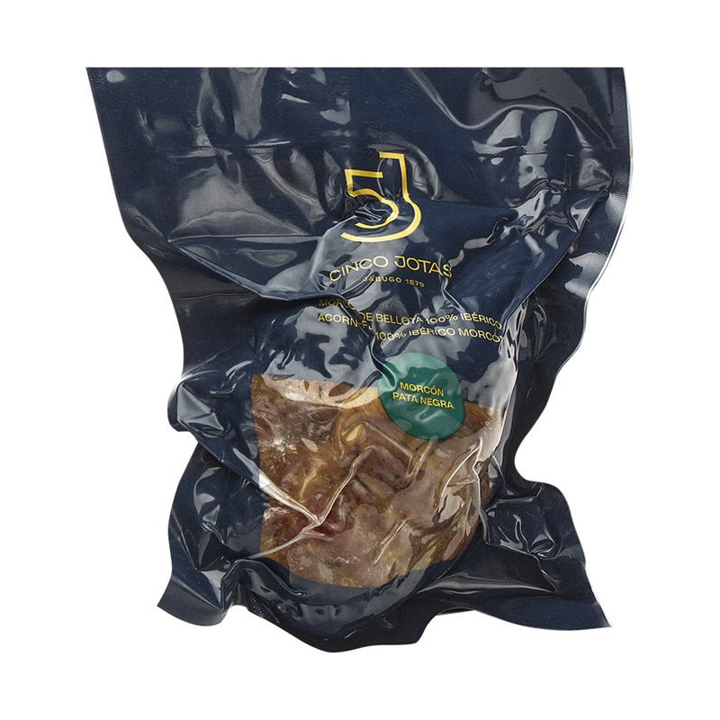 Na Cinco Jotas superamos as normas de qualidade mais rigorosas para obter um produto extraordinário e inconfundível: o Morcón de bolota 100% ibérico, ou brida negra.