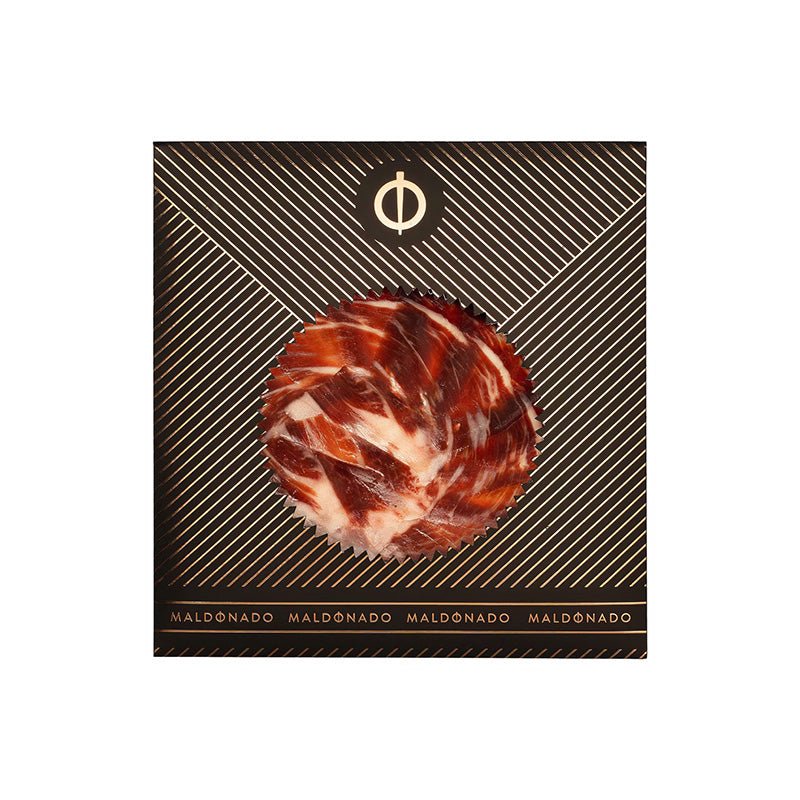 A Paleta Maldonado Fatiada provém exclusivamente de porcos 100% ibéricos criados em liberdade nas dehesas extremeñas. A sua gordura infiltrada, rica em ácido oleico, aporta suculência e um sabor delicado e persistente, com notas características a frutos secos e bolota.